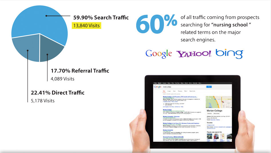 Marian College, a Vocational nursing school with two locations, saw a plateau in their student enrollment rates. They needed to differentiate amongst competitors and improve their online visibility with prospective students.